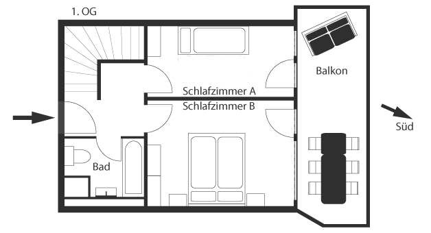 Dank der optimalen Ausrichtung Süd/West hat man den ganzen Tag eine gute Besonnung auf den zwei Balkons.